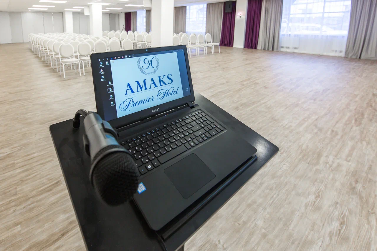 Оборудованные залы: свет, звук, экраны и всё необходимое для проведения мероприятий. Предоставляются: доска с маркерами, лазерная указка, экран, проектор, ноутбук, микрофон, бесплатный Wi-Fi.